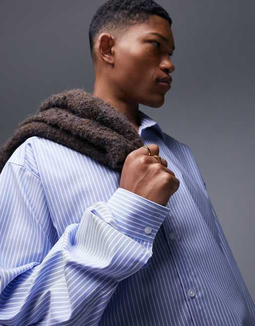 Blue striped formal shirt sales