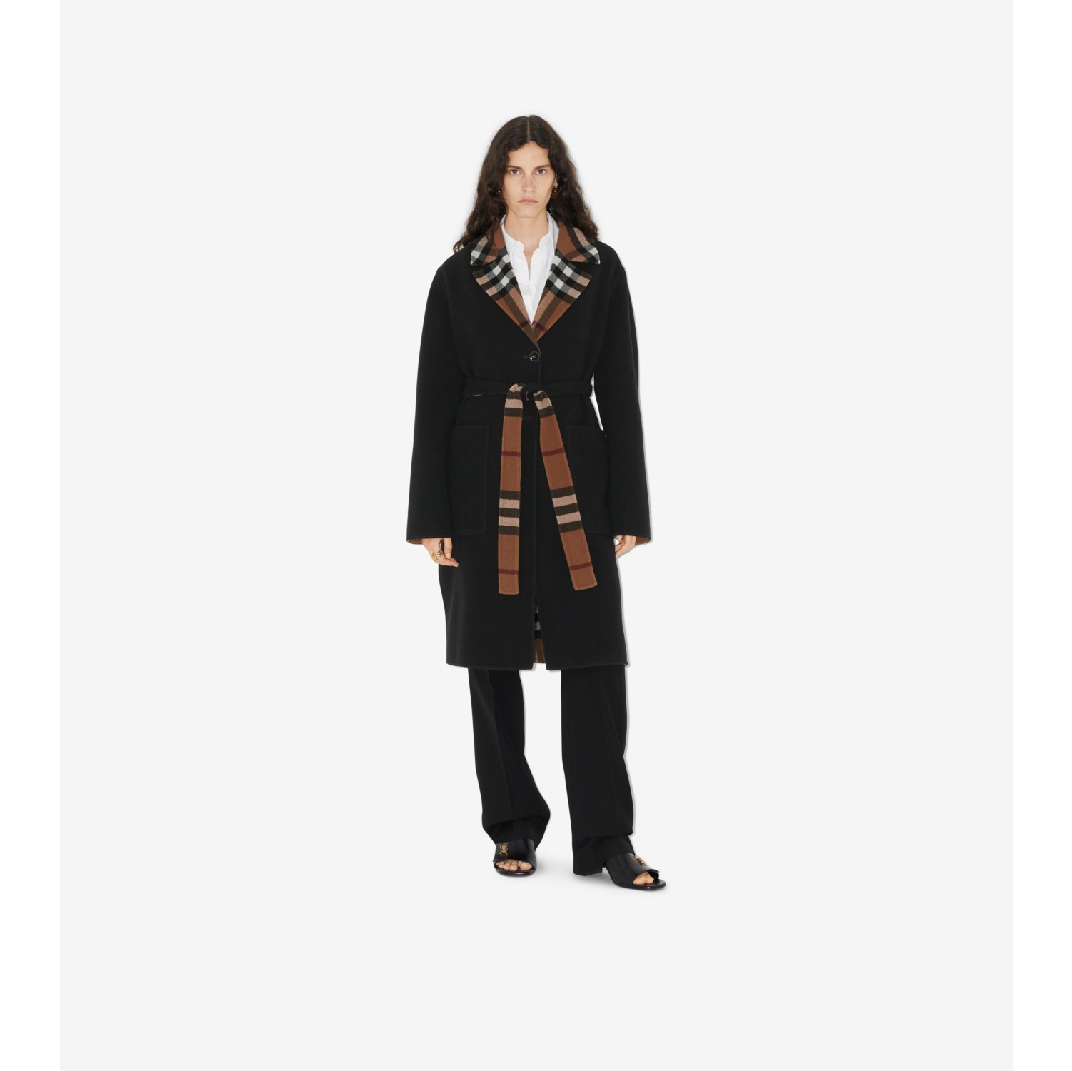 Burberry checked wool coat sales