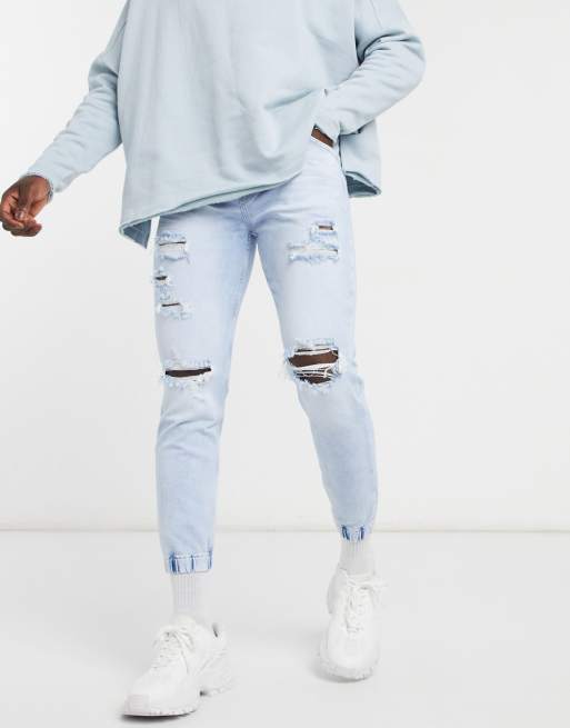 Distressed denim joggers mens sales