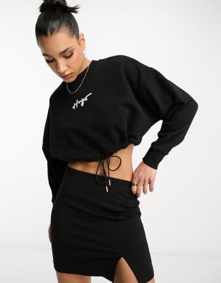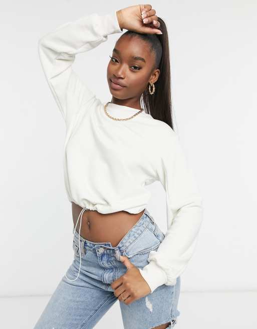 Drawstring crop sweatshirt sales