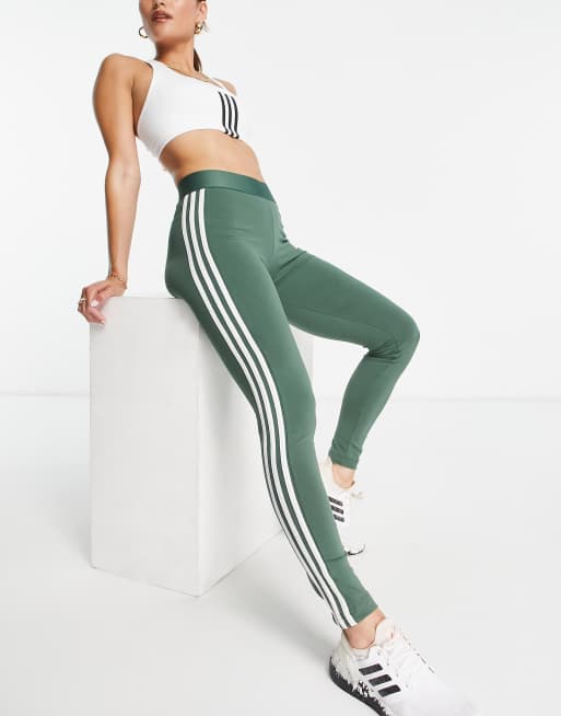 Adidas khaki leggings 3 stripe sales