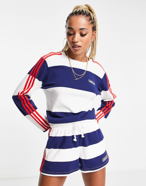 Adidas long sleeve striped top sales