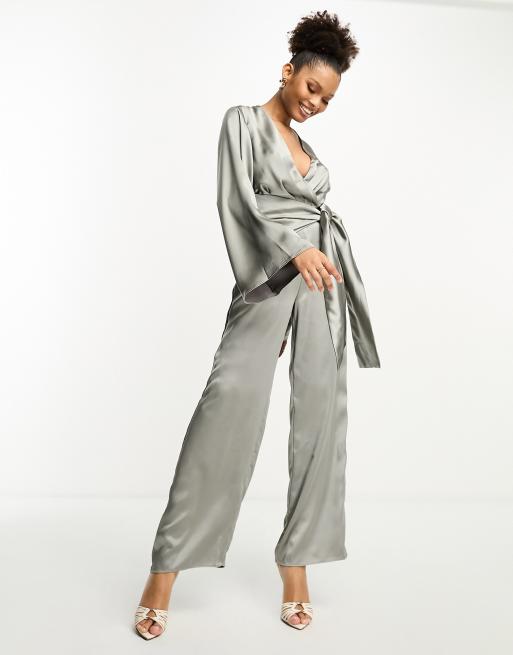 Grey silk jumpsuit sales