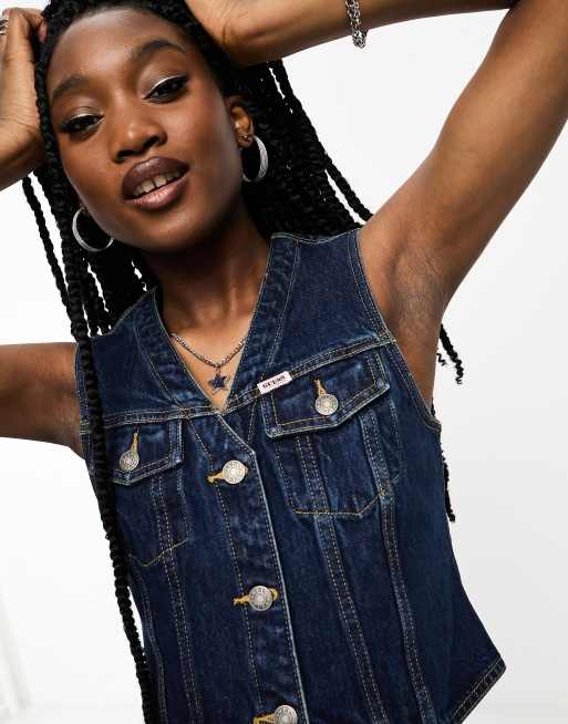 Guess denim vest sales