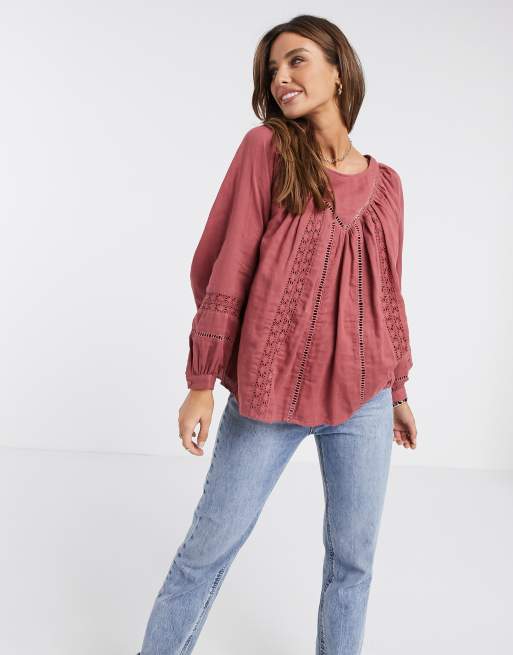 Lace inset smocked top sales