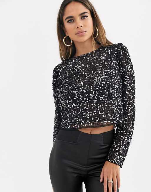 Long sleeve top with sequin embellishment sales