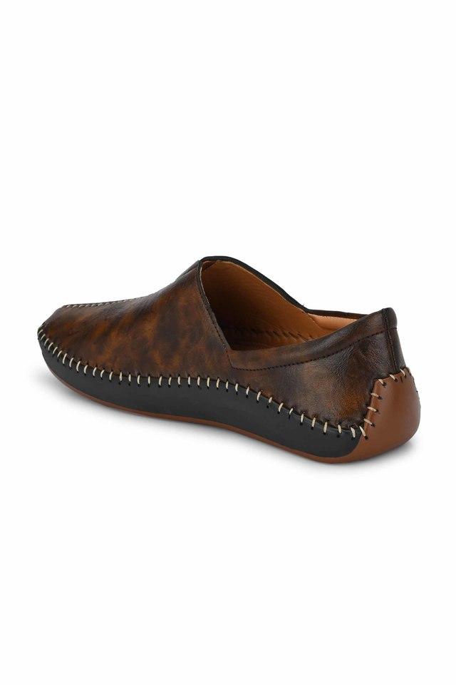 Mens brown leather casual slip on shoes sales