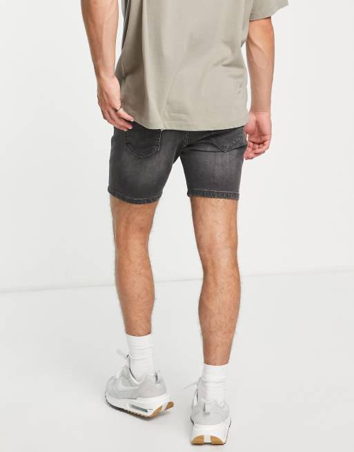 Mens skinny fit denim shorts sales