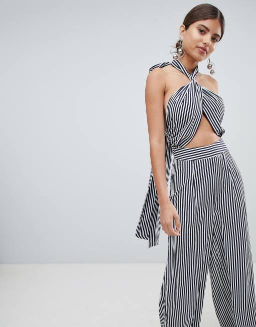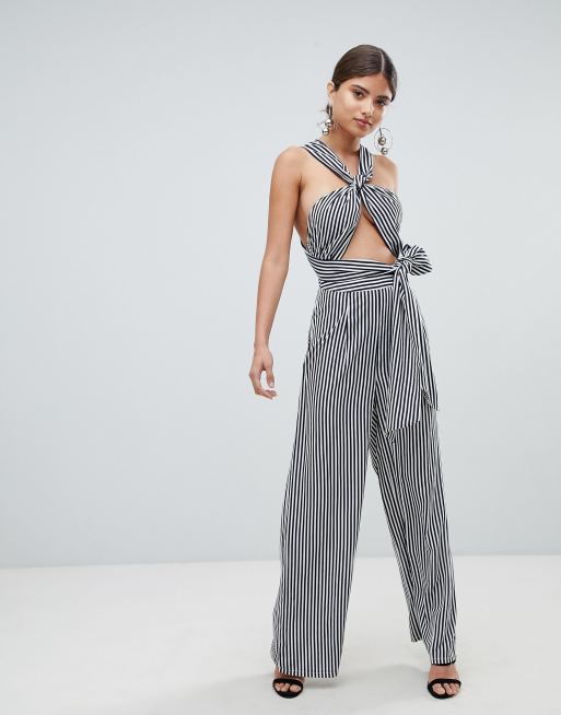 Missguided striped jumpsuit sales