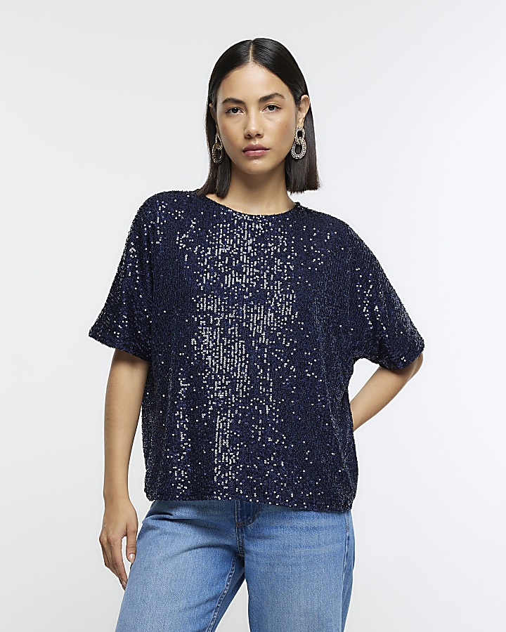 Navy sequin top sales
