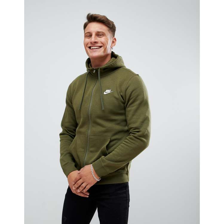 Nike club swoosh zip through hoodie in green sales