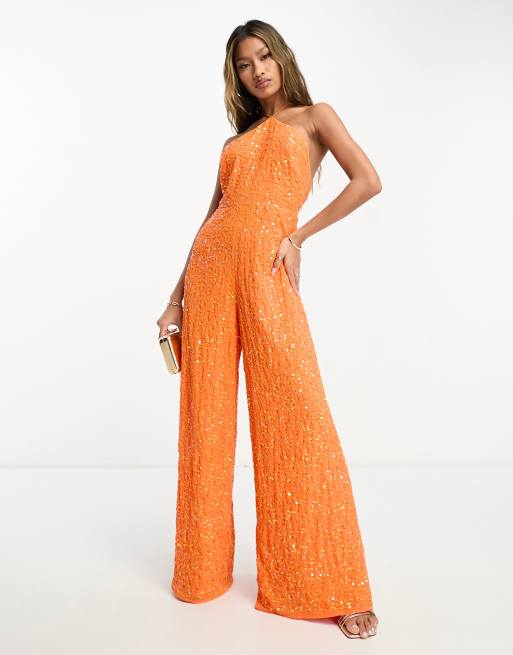 Orange sequin jumpsuit sales