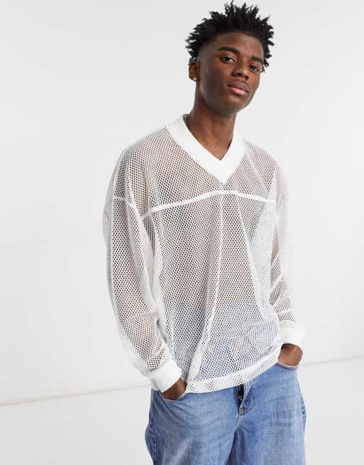 Oversized white mesh top sales