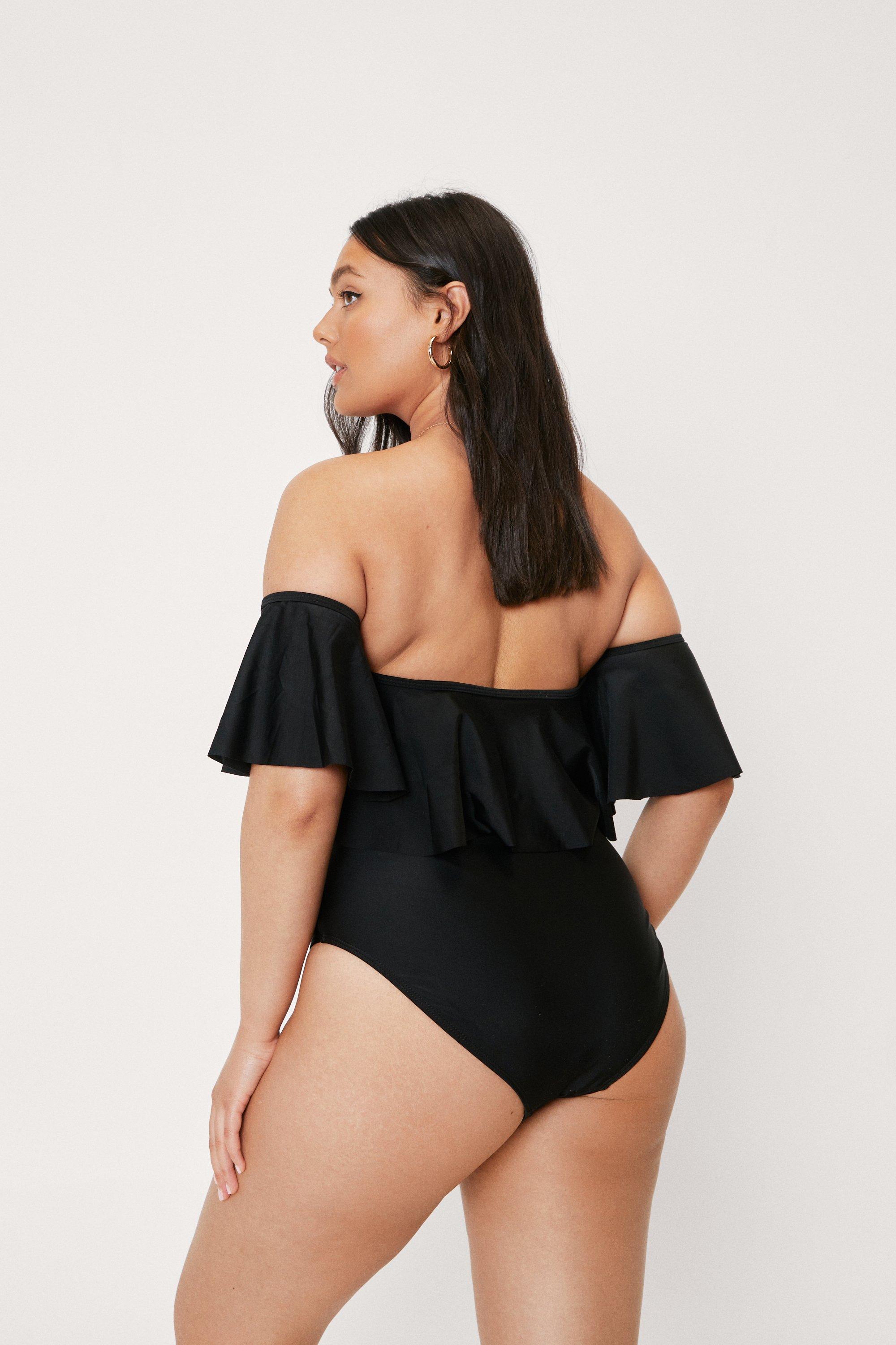 Plus size swimwear off shoulder sales