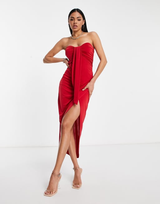 Red bandeau midi dress sales
