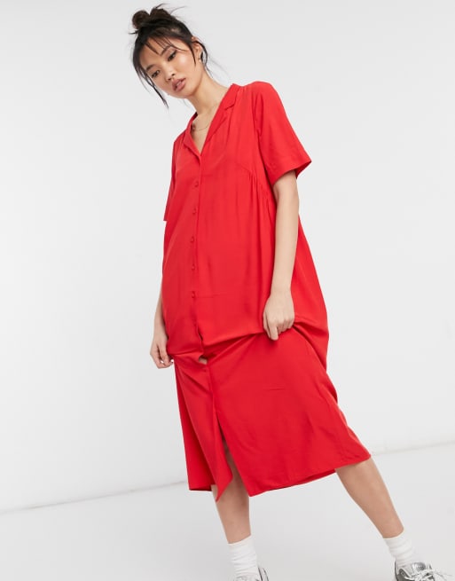 Red button up shirt dress sales