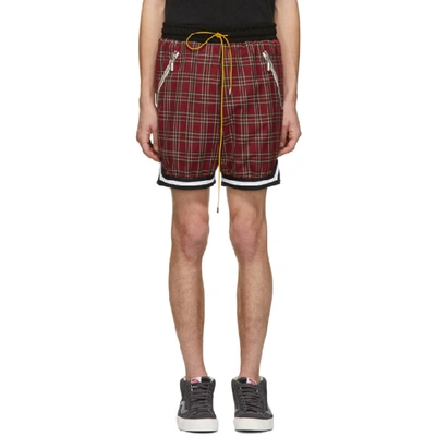 Red plaid basketball shorts sales