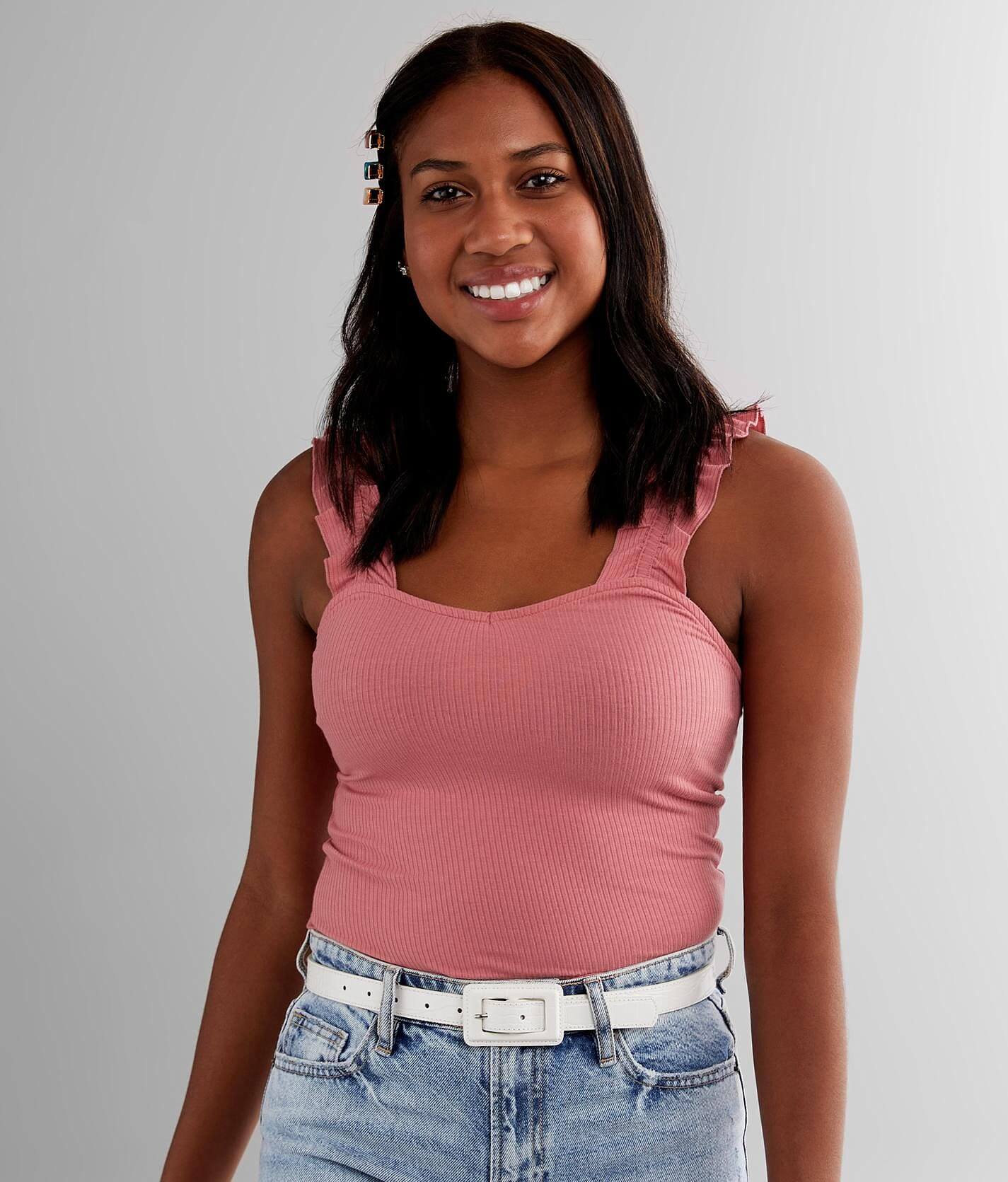 Ruffle strap cami top sales
