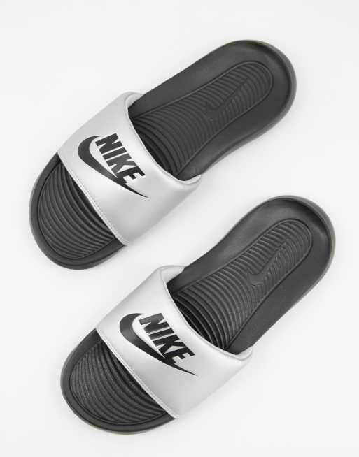 Silver nike sliders sales