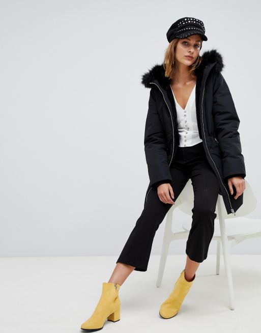 Stradivarius parka jacket with fur hood sales