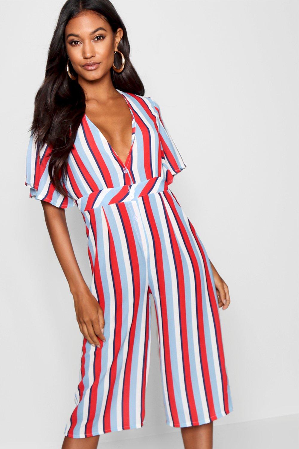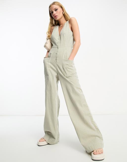 Striped jumpsuit with buttons sales