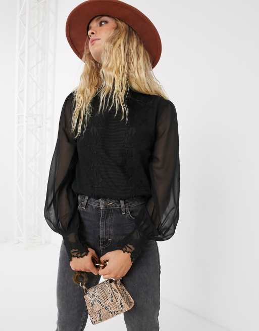 Topshop sheer black blouse sales
