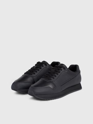 Triple black leather trainers sales