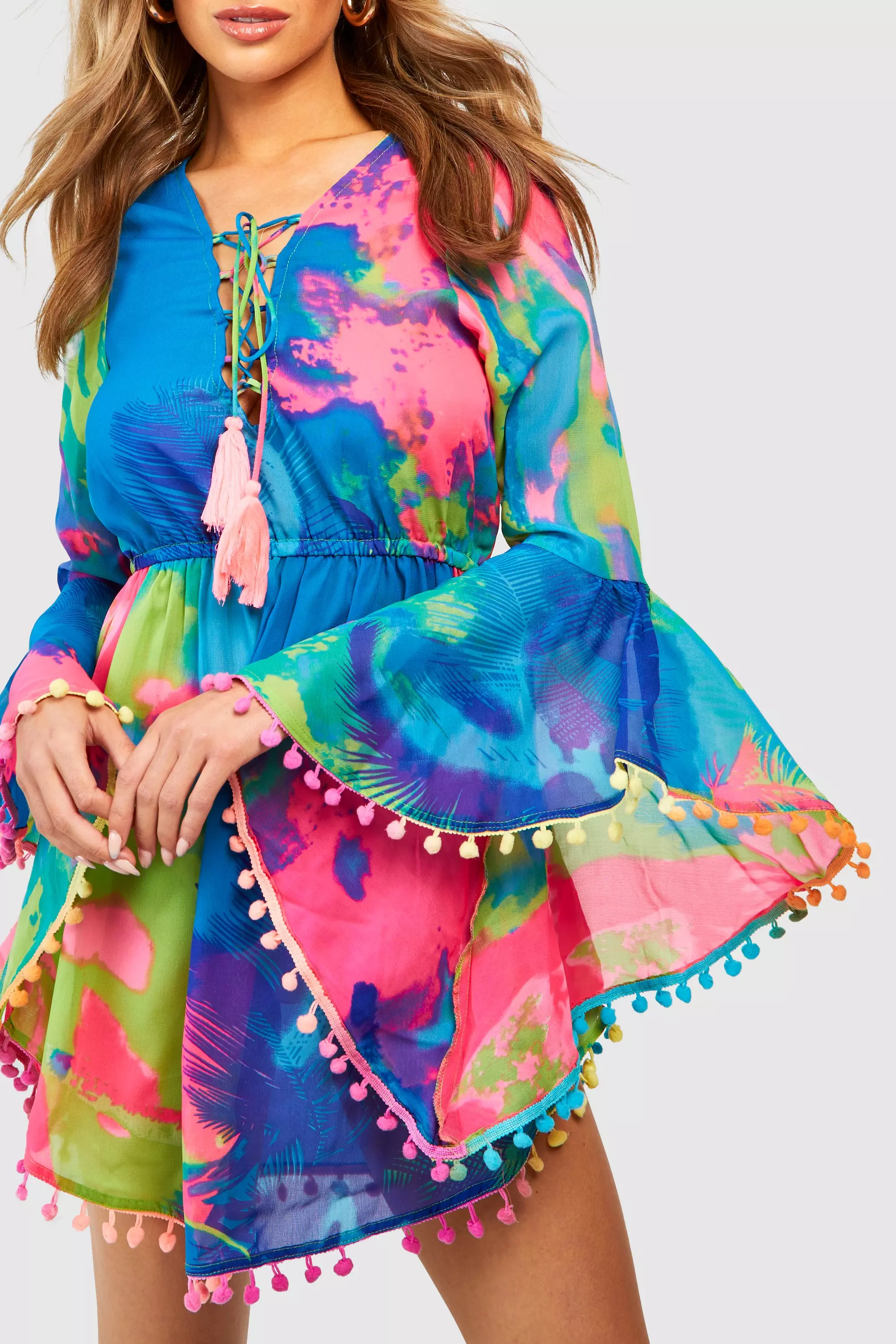 Tropical pom pom beach dress sales