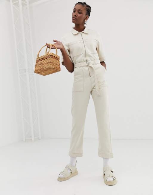 Weekday denim boilersuit in ecru sales