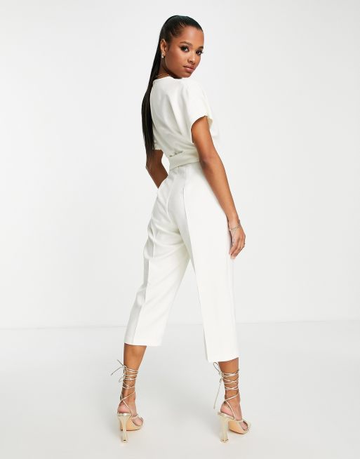 White jumpsuit tie waist sales