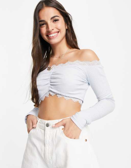 White off the shoulder ruched top sales