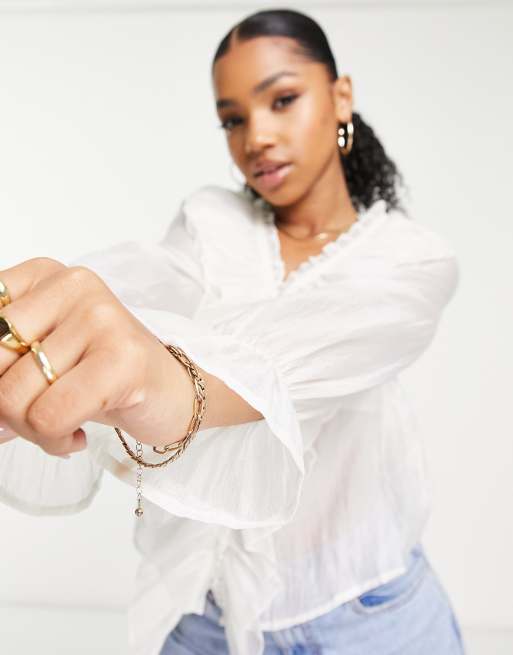 White sheer ruffle blouse sales