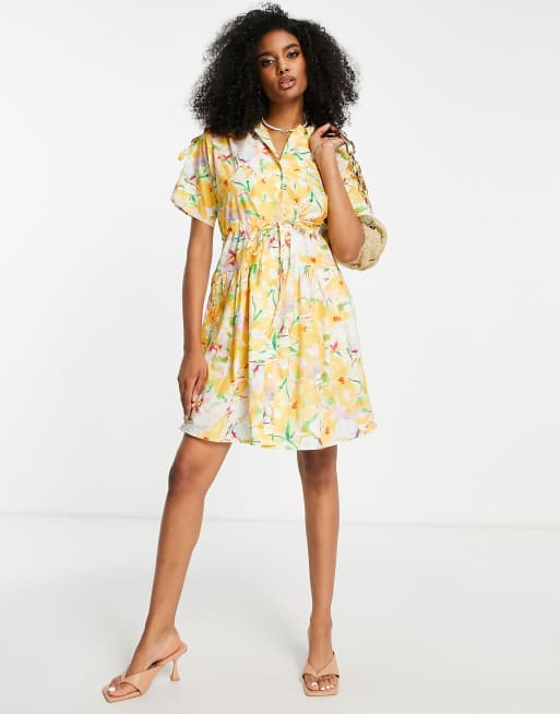 Yellow floral shirt dress sales