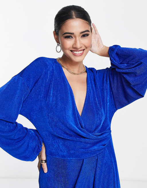 Asos blue wrap dress sales