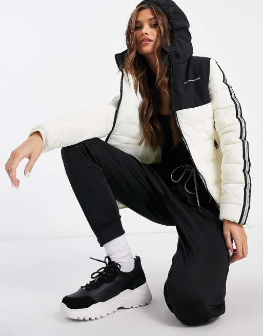 Black and white champion jacket sales