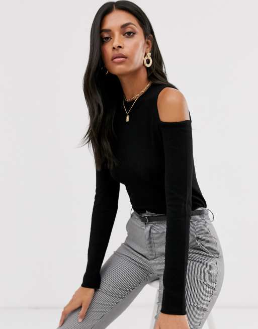 Black cut out shoulder top sales