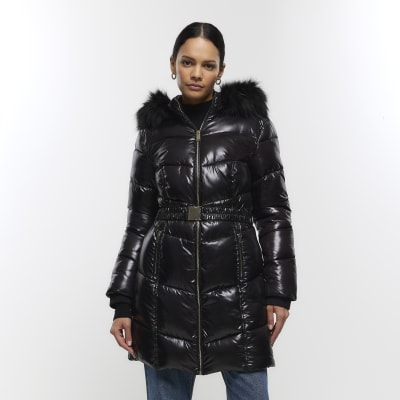 Black fitted padded coat sales