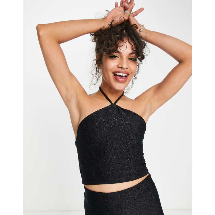 Black glitter halter neck top sales