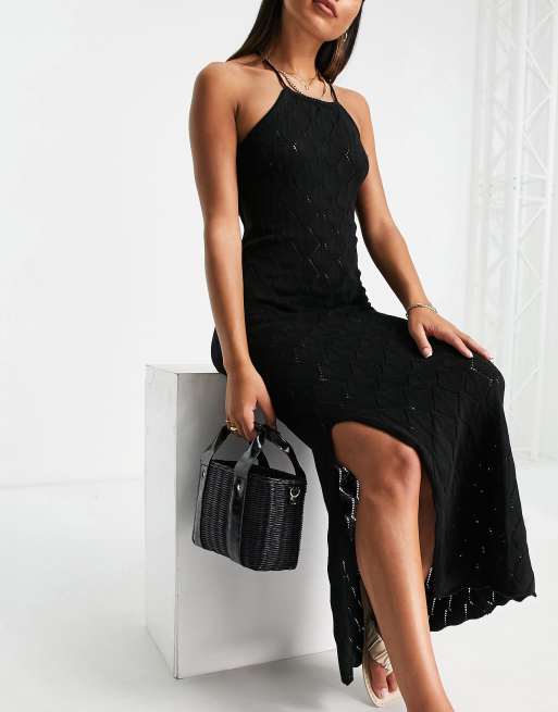 Black knitted beach dress sales