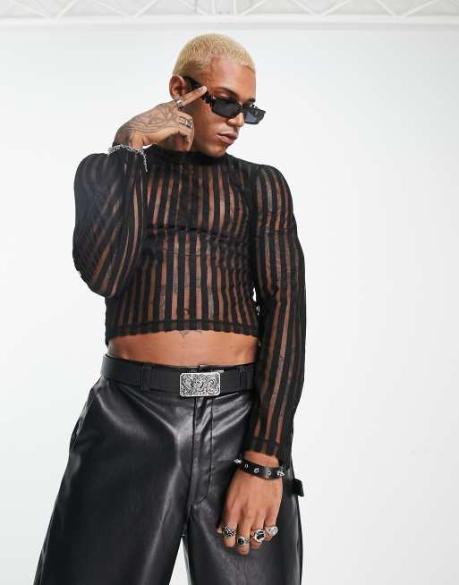 Black mesh stripe top sales
