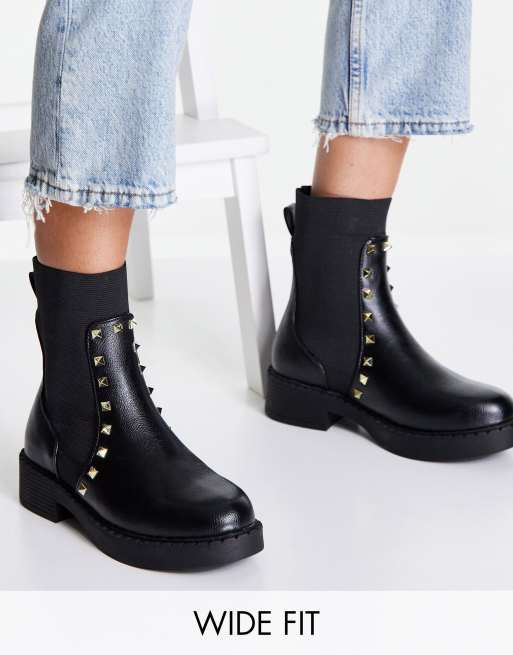 Black studded lace up boots sales
