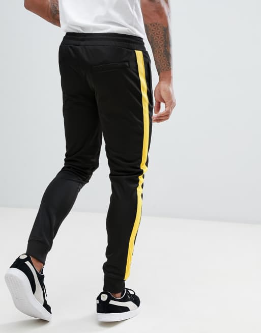 Black sweatpants with yellow stripe sales