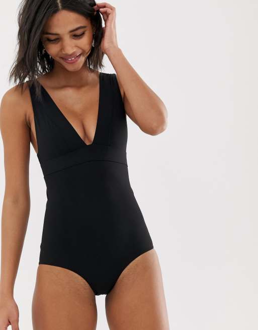 Black v neck swimsuit sales
