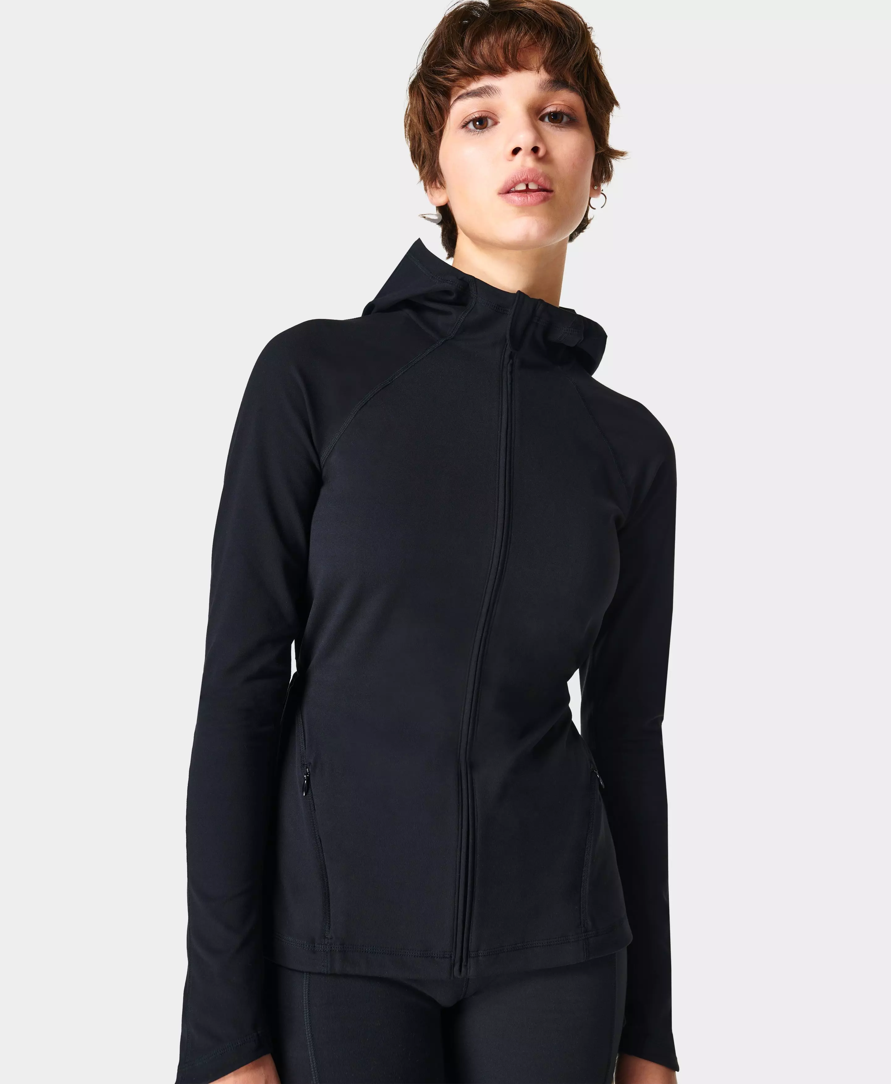 Black zip up workout jacket sales